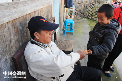 當?shù)匦∨笥褜⒆约旱奶撬徒o臺灣來的客人。(中國臺灣網(wǎng) 劉承思 攝)