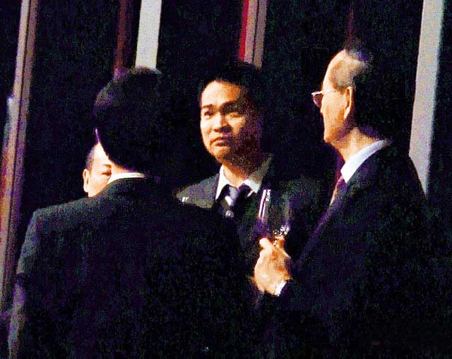 主角連勝武忙著拿紅酒與賓客寒暄,臉上笑容不止,說(shuō)到開(kāi)心處更是比手畫(huà)腳,連勝文夫婦也在場(chǎng)和友人聊天,久未露面的連惠心則是一身黑色洋裝精心打扮。宴會(huì)約在10點(diǎn)左右結(jié)束,路永佳及一群友人準(zhǔn)備離開(kāi),她白洋裝配上俏麗短發(fā),比上月底被拍到和老公出門看電影時(shí),更顯消瘦,身材恢復(fù)良好,1歲多的大兒子連宇捷則由一名女子抱著,準(zhǔn)備上車離開(kāi),不久連勝武下樓,他似乎有些醉意,由友人扶著,最后連勝武一行人一同上車離去準(zhǔn)備續(xù)攤。