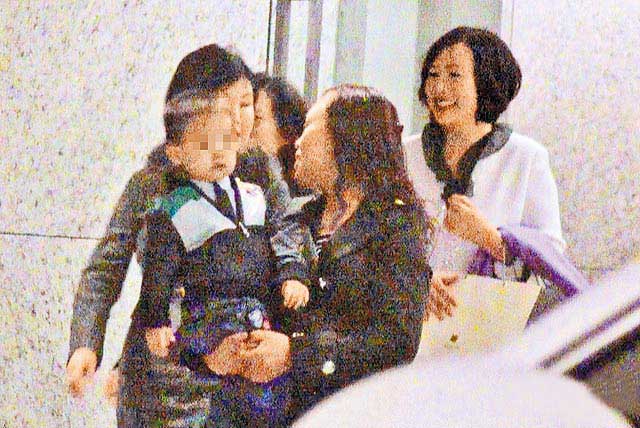 連勝武1歲半的兒子連宇捷(左)被女子抱著,老婆路永佳(右)在旁笑得燦爛。圖片來(lái)自臺(tái)媒