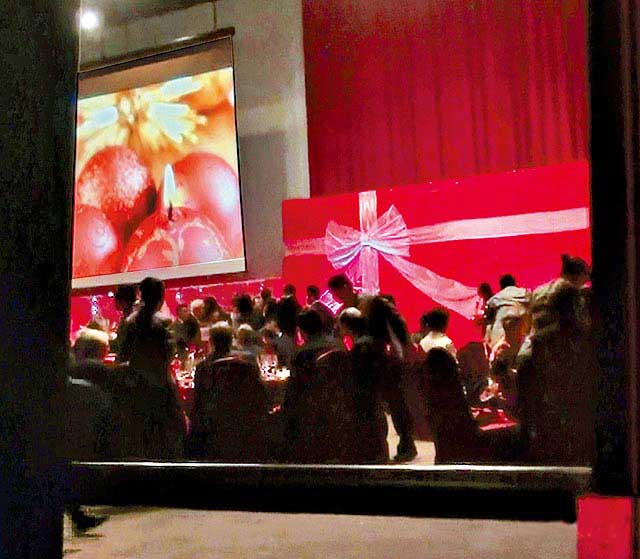會(huì)場(chǎng)布置喜氣洋洋,還綁上粉紅色緞帶裝飾。圖片來(lái)自臺(tái)媒