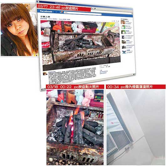 18日凌晨零時(shí)34分,林美亨又上傳房?jī)?nèi)煙霧彌漫的第三張照片,她留言說:“應(yīng)該來不及了,我房間都是煙?我剛PO(傳)照了?應(yīng)該都是死了都要FB(臉書)?FB中毒吧?哈哈”林美亨還要?jiǎng)袼挠讶讼热ニX休息,臉書朋友“中心”焦急勸說:“冷靜好嗎?快開窗!”但林美亨最后在零時(shí)53分回說:“很醺流眼淚了,別再回應(yīng)!”從此再無訊息。直到當(dāng)天上午7時(shí)許王姓同居男友回家,林女已死亡。