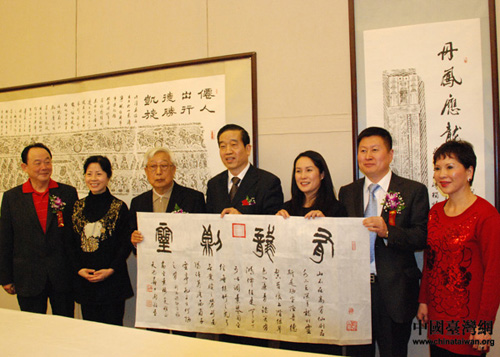 蘇士澍先生將加蓋金印“有龍則靈”的書法作品贈(zèng)與臺(tái)灣代表(中國(guó)臺(tái)灣網(wǎng) 劉瑩 攝)