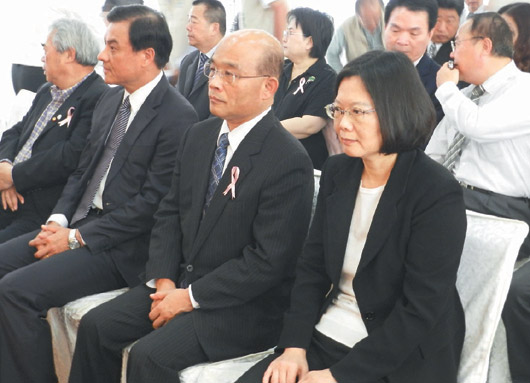 蔡英文(右前一)和蘇貞昌(右前二)昨在前“立委”謝明源父親公祭上會(huì)面,但兩人甚少互動(dòng),比鄰而坐也未交談。(圖片來自網(wǎng)絡(luò))