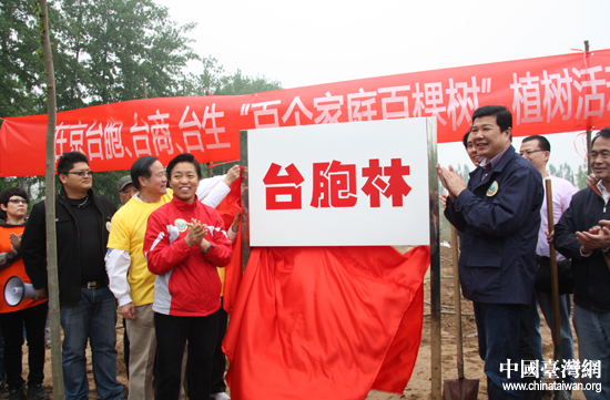 中國臺灣網4月21日消息 為響應北京市政府全民義務植樹的號召,建設人文北京、綠色北京,北京市臺灣同胞聯(lián)誼會、北京臺資企業(yè)協(xié)會聯(lián)合組織的“在京臺胞、臺商、臺生‘百個家庭百棵樹’植樹活動”今日在朝陽區(qū)崔各莊鄉(xiāng)舉行。北京市臺聯(lián)會長蘇輝、北京臺協(xié)會長林清發(fā)等多位領導和嘉賓參加了本次活動,并共同為“臺胞林”揭匾。