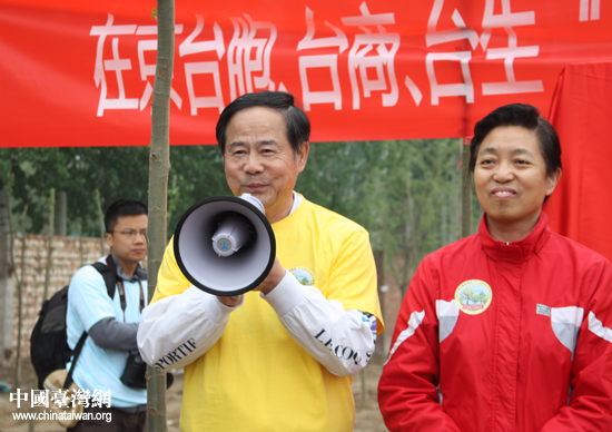 北京市臺資企業(yè)協(xié)會長林清發(fā)(左)與北京市臺聯(lián)會長蘇輝(右)號召在京臺灣同胞積極綠化,共筑家園。(中國臺灣網 王思羽 攝)