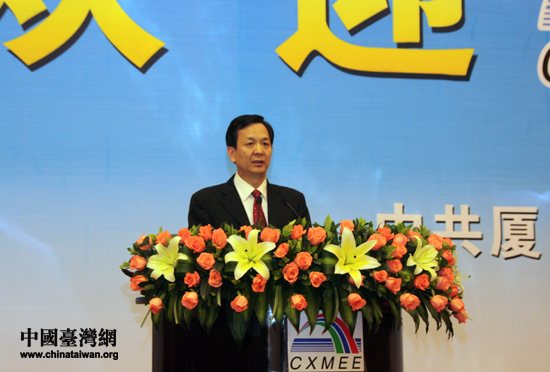 廈門市人大常委會主任鄭道溪致晚宴歡迎辭。(中國臺灣網(wǎng) 王思羽 攝)