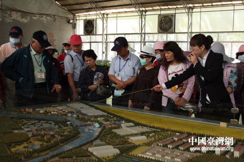 5月6日,臺(tái)灣基層民眾參觀了北戴河集發(fā)生態(tài)觀光園。圖為講解員向大家介紹生態(tài)園規(guī)劃。(中國臺(tái)灣網(wǎng) 郜利敏 攝)