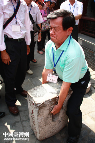 陳益川先生親身體驗(yàn)“搬石頭”。 (中國(guó)臺(tái)灣網(wǎng) 劉承思 攝)