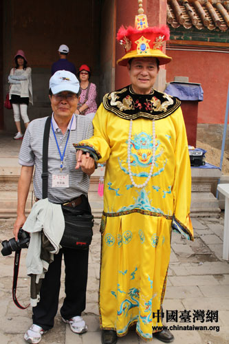 臺(tái)灣基層民眾游覽清東陵。圖為戲“穿”回古代,演繹皇上出宮。(中國臺(tái)灣網(wǎng)發(fā) 張成標(biāo) 攝)