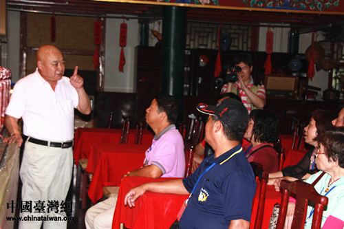 臺灣團員聽湖廣會館館長霍建慶講述會館歷史。(中國臺灣網 劉承思 攝)