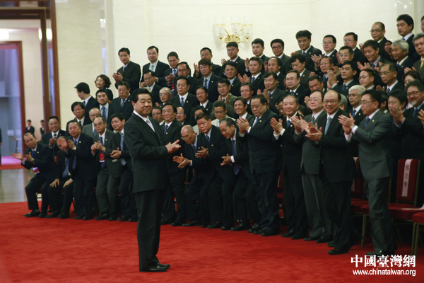 中共中央政治局常委、全國(guó)政協(xié)主席賈慶林今天下午在人民大會(huì)堂會(huì)見(jiàn)全國(guó)臺(tái)企聯(lián)第二屆會(huì)員代表大會(huì)代表。(中國(guó)臺(tái)灣網(wǎng) 王偉 攝)