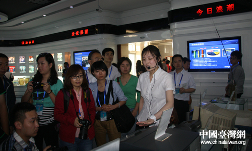采訪團(tuán)記者在浪潮云計算創(chuàng)新中心參觀、采訪。(中國臺灣網(wǎng) 郭瑩瑩 攝)