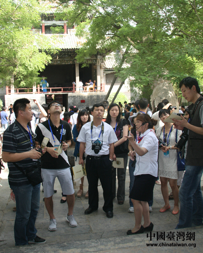 記者們?cè)谏疥儠?huì)館認(rèn)真聽取講解員介紹。(中國(guó)臺(tái)灣網(wǎng) 郭瑩瑩 攝)