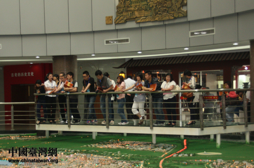 運(yùn)河博物館內(nèi)囊括整個(gè)聊城市面貌的巨大沙盤(pán)吸引了記者們的目光。(中國(guó)臺(tái)灣網(wǎng) 郭瑩瑩 攝)