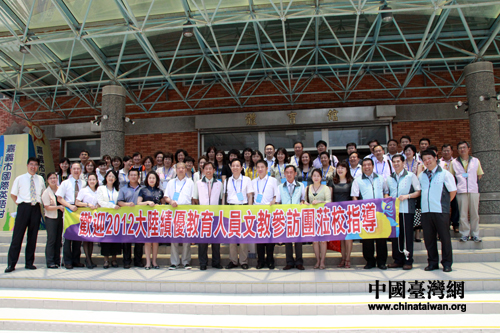 5月25日上午,“大陸優(yōu)秀教育工作者交流團(tuán)”一行來到嘉義市興嘉小學(xué),與師生、家長會代表互動交流。圖為兩岸教育工作者合影留念。(中國臺灣網(wǎng) 李丹 攝)
