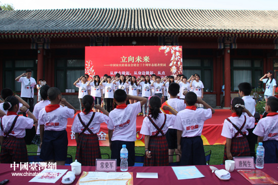 海峽兩岸的志愿者共同宣誓,承諾愿意成為一名光榮的中國宋慶齡基金會志愿者。(中國臺灣網 孟雅詩 攝)