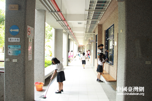 學(xué)生集體打掃校園衛(wèi)生。(中國(guó)臺(tái)灣網(wǎng) 李丹 攝)