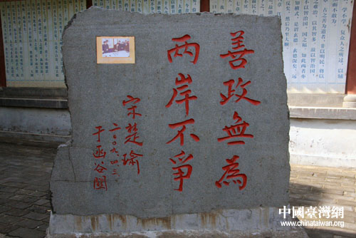 2009年4月,臺灣親民黨主席宋楚瑜于函谷關題字“善政無為,兩岸不爭”。(中國臺灣網 于斯文 攝)