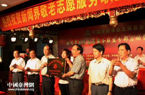 中國(guó)臺(tái)灣網(wǎng)5月31日北京消息 今日上午,中國(guó)老齡事業(yè)發(fā)展基金會(huì)在京舉行了新聞界敬老志愿服務(wù)聯(lián)盟分部成立啟動(dòng)儀式暨培訓(xùn)會(huì)議,與會(huì)領(lǐng)導(dǎo)在啟動(dòng)儀式上為“中國(guó)老齡事業(yè)發(fā)展基金會(huì)新聞界敬老志愿服務(wù)聯(lián)盟分部”揭牌,敬老志愿者隊(duì)伍又添新軍。