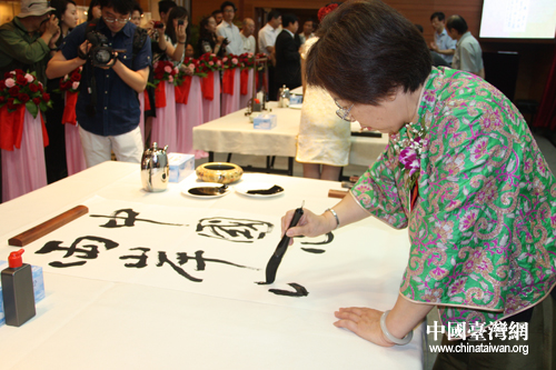 臺灣書法家現(xiàn)場潑墨,寫下“中國心、兩岸情”(中國臺灣網(wǎng) 陳寧 攝)