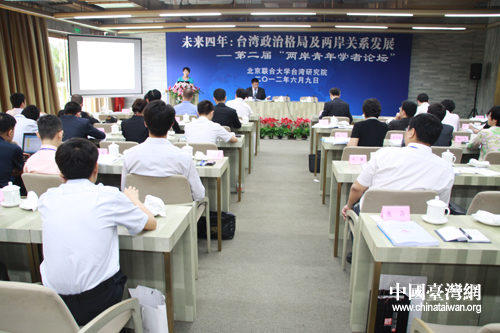 6月9日,由北京聯(lián)合大學(xué)臺(tái)灣研究院主辦的第二屆“兩岸青年學(xué)者論壇”在北京召開。來自海峽兩岸從事兩岸關(guān)系研究的青年學(xué)者40余人就“未來四年臺(tái)灣政治格局及兩岸關(guān)系發(fā)展”進(jìn)行研討。(中國(guó)臺(tái)灣網(wǎng)記者 蕪?fù)?攝)