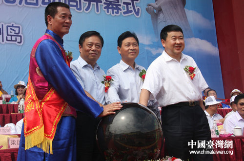 嘉賓共同啟動“第四屆海峽論壇·媽祖文化活動周”開幕按鈕。(中國臺灣網(wǎng) 郭瑩瑩 攝)
