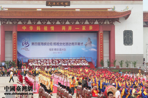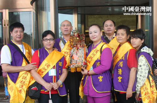 來自花蓮湄清宮的媽祖信眾代表懷抱湄清宮的媽祖像來到湄洲島。(中國臺灣網(wǎng) 郭瑩瑩 攝)