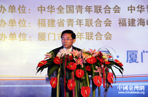 國務(wù)院臺辦交流局局長程金中代表國務(wù)院臺辦宣讀賀信。(中國臺灣網(wǎng) 王思羽 攝)