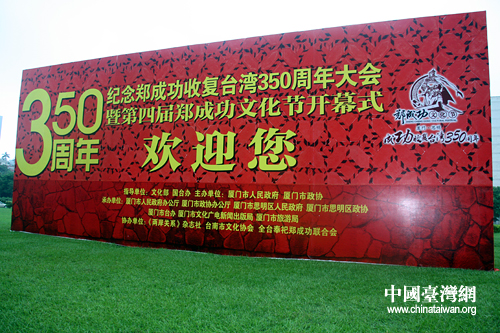 “紀念鄭成功收復(fù)臺灣350周年大會暨第四屆鄭成功文化節(jié)”外場氣氛熱烈。(中國臺灣網(wǎng) 董子譽 攝)