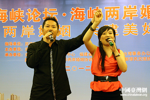 熊天平和楊洋夫婦在論壇現(xiàn)場(chǎng)為大家演唱歌曲《天涯共此時(shí)》。(中國(guó)臺(tái)灣網(wǎng) 栗琰 攝)