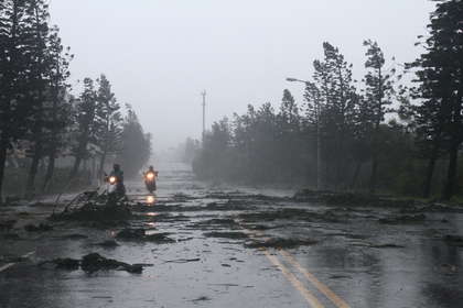 澎湖道路上堆滿折斷的樹枝。圖片來自臺媒