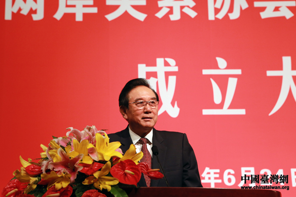 6月24日上午,海峽兩岸關(guān)系協(xié)會(huì)書(shū)畫(huà)交流分會(huì)成立大會(huì)在北京釣魚(yú)臺(tái)國(guó)賓館舉行。圖為海峽兩岸關(guān)系協(xié)會(huì)會(huì)長(zhǎng)陳云林在成立大會(huì)上致辭。(中國(guó)臺(tái)灣網(wǎng) 于斯文 攝)