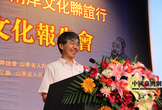 山東省委宣傳部副部長、山東省文化廳黨組書記徐向紅主講山東文化報(bào)告會(huì)。(中國臺(tái)灣網(wǎng) 芮益芳 攝)