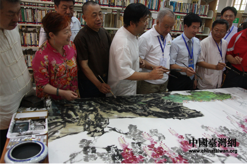 兩岸畫家合作創(chuàng)作的大幅國(guó)畫(中國(guó)臺(tái)灣網(wǎng) 蕪?fù)?nbsp;攝)