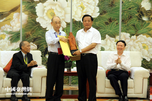 山東省委常委、統(tǒng)戰(zhàn)部部長顏世元向參加“情系齊魯”活動(dòng)的臺(tái)灣嘉賓贈(zèng)送孔子像。(中國臺(tái)灣網(wǎng) 芮益芳 攝) 第1頁第2頁第3頁