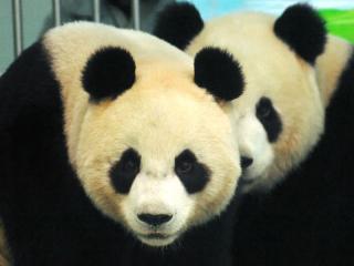 大貓熊“圓圓”(左)雖出現(xiàn)懷孕的臨床行為表征,但3日做腹部超音波掃描檢查仍未看到胎兒。資料圖。圖片來自臺媒