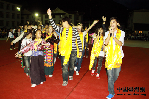 7月5日晚,川臺(tái)兩地學(xué)生在九寨溝縣漳扎小學(xué)舉行篝火晚會(huì)。(中國(guó)臺(tái)灣網(wǎng) 王偉 攝)