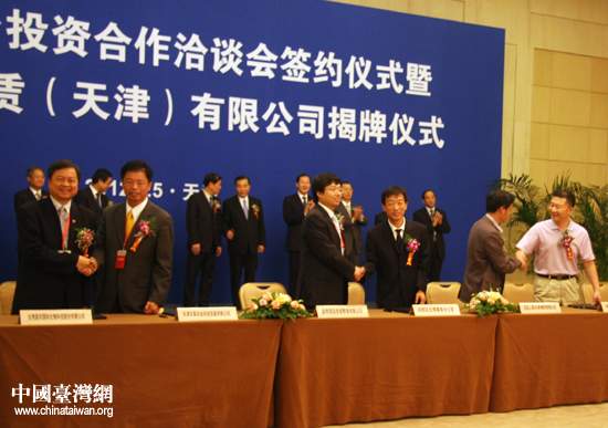 當(dāng)日的簽約儀式共簽署包括廈門(mén)銀行設(shè)立分行、建立津臺(tái)貿(mào)易服務(wù)平臺(tái)、服務(wù)津臺(tái)貿(mào)易結(jié)算、津臺(tái)農(nóng)業(yè)合作示范園區(qū)、寶島美食城在內(nèi)的16個(gè)合作項(xiàng)目,涉及電子信息、融資租賃、中小企業(yè)融資、農(nóng)業(yè)科技、商品展銷(xiāo)等諸多領(lǐng)域,簽約金額約50億元人民幣。