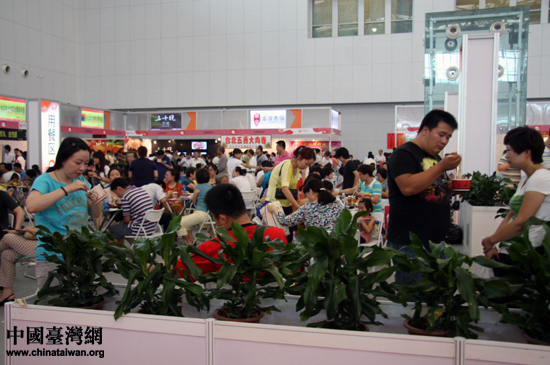 展館內(nèi)用餐區(qū)座無(wú)虛席,部分觀展者只能站著吃。(中國(guó)臺(tái)灣網(wǎng) 王思羽 攝)