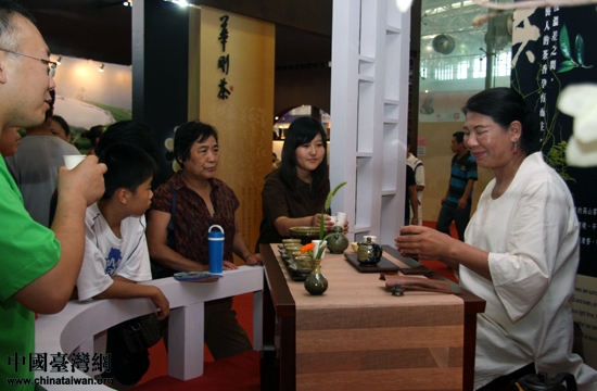 參展茶商熱情邀請(qǐng)觀展市民品茶。(中國(guó)臺(tái)灣網(wǎng) 王思羽 攝)