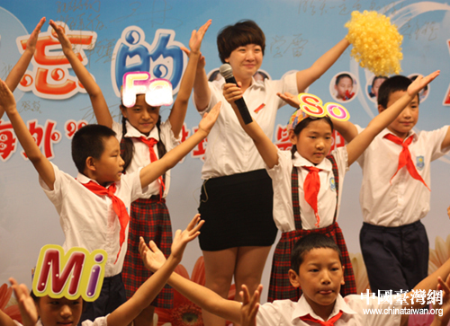 2012年7月5日,北京市海淀外國(guó)語(yǔ)實(shí)驗(yàn)學(xué)校舉辦了題為《難忘的海外生活》的主題班會(huì),22名來(lái)自青海省玉樹(shù)地震災(zāi)區(qū)的孩子展現(xiàn)了他們兩年來(lái)學(xué)習(xí)、生活中珍貴難忘的經(jīng)歷與回憶。圖為英語(yǔ)課堂再現(xiàn),孩子們熟練地用英語(yǔ)對(duì)話和歌唱。(中國(guó)臺(tái)灣網(wǎng) 楊永青 攝)