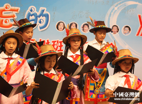 玉樹(shù)孩子們表演朗讀節(jié)目(中國(guó)臺(tái)灣網(wǎng) 楊永青 攝)