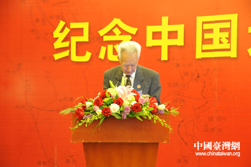云南省黃埔軍校同學會副會長、遠征軍老戰(zhàn)士劉華致辭。(中國臺灣網 齊曉靖 攝)