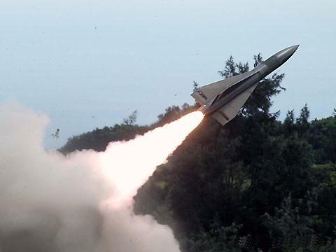 臺軍三軍聯(lián)合實彈射擊,發(fā)射鷹式飛彈。圖片來自臺媒