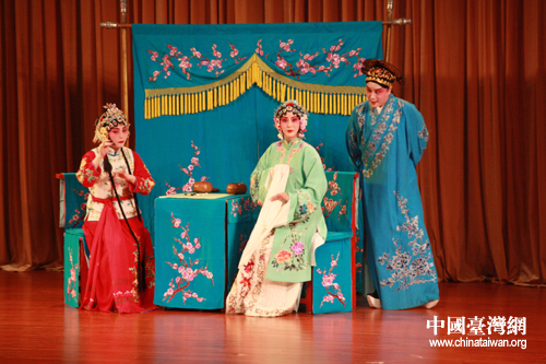 臺灣師范大學(xué)昆曲研究社、中華昆曲藝術(shù)協(xié)進(jìn)會常務(wù)理事蔡孟珍女士(左)與浙江昆劇院洪倩(中)、李公律(右)共同出演《西廂記·跳墻著棋》。(中國臺灣網(wǎng) 孟雅詩 攝)
