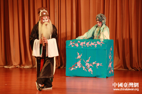 北京昆曲研習(xí)社李楯(左)在《牡丹亭·游園驚夢(mèng)》中扮演夢(mèng)神。(中國(guó)臺(tái)灣網(wǎng) 孟雅詩(shī) 攝)