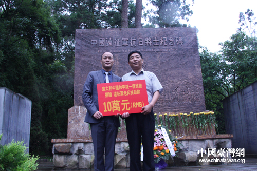 意大利中國(guó)和平統(tǒng)一促進(jìn)會(huì)劉光華會(huì)長(zhǎng)捐款(中國(guó)臺(tái)灣網(wǎng) 齊曉靖 攝)