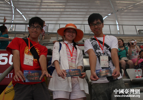臺(tái)灣學(xué)生在鳥巢合影留念。(中國(guó)臺(tái)灣網(wǎng) 李瑞艷 攝)