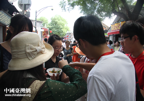 品嘗小吃,樂在其中。(中國(guó)臺(tái)灣網(wǎng) 李瑞艷 攝)