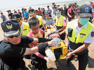新北市淡水沙侖海域失蹤的學生昨天相繼尋獲,吳翊庭被救起時已無生命跡象,但救護人員仍不放棄搶救。 (圖片來源:臺灣《聯(lián)合報》)